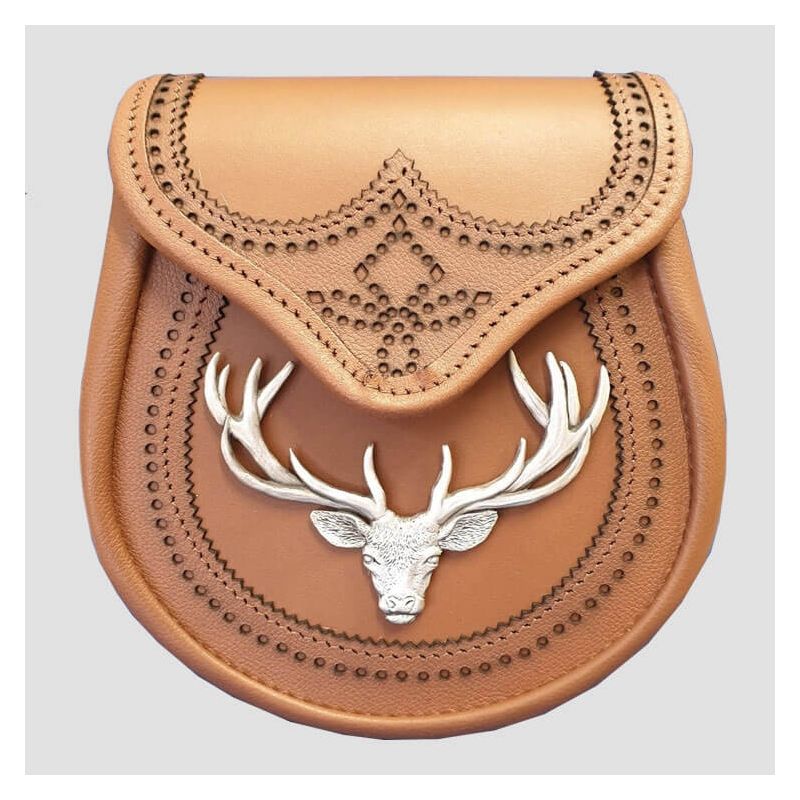 Elevate your traditional attire with our Brogued Tan Leather Sporran, a perfect blend of style and functionality that every kilt wearer adores. Crafted from high-quality leather, this sporran is not only a statement piece but also a practical accessory for storing essentials during events.Featuring intricate brogue detailing, a secure clasp, and a spacious main compartment, it combines elegance with durability. Its classic tan hue complements any kilt, making it a versatile addition to your wardrobe. Enjoy both style and practicality with this timeless accessory.