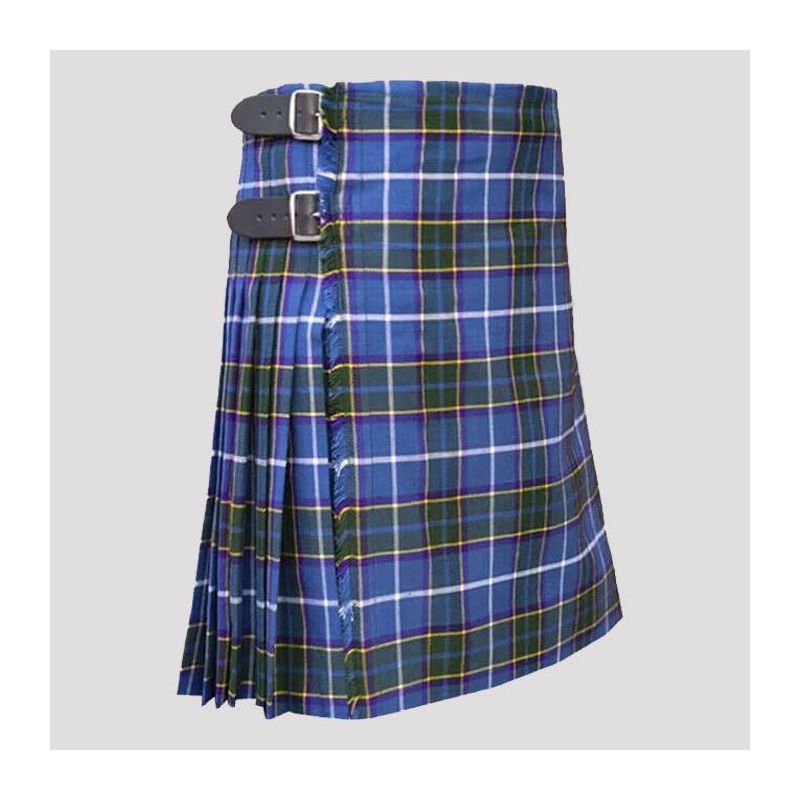 Elevate your wardrobe with the Clan Isle of Man Tartan Kilt, a classic piece that seamlessly blends tradition with modern style. Perfect for those who appreciate their cultural heritage, this kilt is recommended for men and women alike who want to make a bold yet respectful statement at festivals, weddings, and other special occasions. Whether you're participating in a Highland Games event or attending a family reunion, this kilt is a fantastic choice for showcasing your roots.Crafted with attention to detail, the Clan Isle of Man Tartan Kilt features a striking pattern that embodies the vibrant spirit of the Isle of Man. Its design includes a combination of rich colors that symbolize the island's history and landscape. The kilt is expertly tailored to ensure both comfort and style, allowing for a full range of motion whether you are dancing or socializing. A classic pleated back and an adjustable waistband add to its customizable fit, ensuring that you can wear it with confidence.Made from high-quality 100% wool, this kilt not only boasts durability but also provides warmth and breathability. The fabric is gentle against the skin, making it suitable for extended wear during various activities. Additionally, the natural fibers help maintain the kilt’s shape and integrity, allowing for a classic look that lasts through the years.In conclusion, the Clan Isle of Man Tartan Kilt is more than just an article of clothing; it's a celebration of heritage and identity. With its commanding design and quality craftsmanship, this kilt promises to be a timeless addition to your wardrobe that reflects your pride in your lineage.