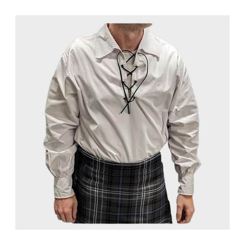 Elevate your traditional attire with our Ghillie Shirt, a classic choice for anyone looking to embrace Scottish heritage. Perfect for kilt wearers, this shirt is recommended for weddings, highland games, or any formal occasion where you want to make a statement. Whether you're a seasoned Highlander or new to the culture, this shirt offers an authentic touch that caters to both enthusiasts and newcomers alike.Designed with both style and comfort in mind, the Ghillie Shirt features long sleeves and adjustable ties that can be fastened at the neck. Its relaxed fit allows for easy movement, making it an ideal option for hours of wear during festivities or celebrations. The elegant yet rugged design pairs seamlessly with any kilt, allowing you to showcase your unique style while honoring tradition.Crafted from high-quality cotton, our Ghillie Shirt guarantees breathability and durability, ensuring you stay comfortable throughout the day. The fabric is soft against the skin, making it a pleasure to wear, while its sturdy construction ensures this shirt will be a staple in your wardrobe for years to come. Available in various sizes to fit all body types, you’ll find the perfect match for your kilt.In conclusion, the Ghillie Shirt is more than just an accessory; it's a statement piece that brings together tradition and comfort. Perfect for any occasion, whether it's a formal gathering or a casual meet-up with friends, this shirt is an essential addition to every kilt enthusiast's wardrobe. Embrace the rich culture of Scotland with this timeless piece and turn heads wherever you go!Write Your Own Review