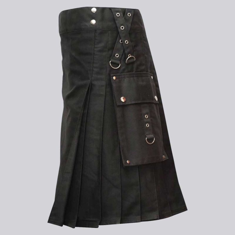A Gothic Fashion Black Utility Kilt is a stylish piece of clothing designed for men. It blends modern fashion and traditional kilt design. This kilt is made from durable fabric and features utility pockets, making it practical and fashionable. You can wear it for casual outings or special events. The black color adds versatility, making it easy to match. This kilt is perfect for those who appreciate gothic fashion and want something unique.