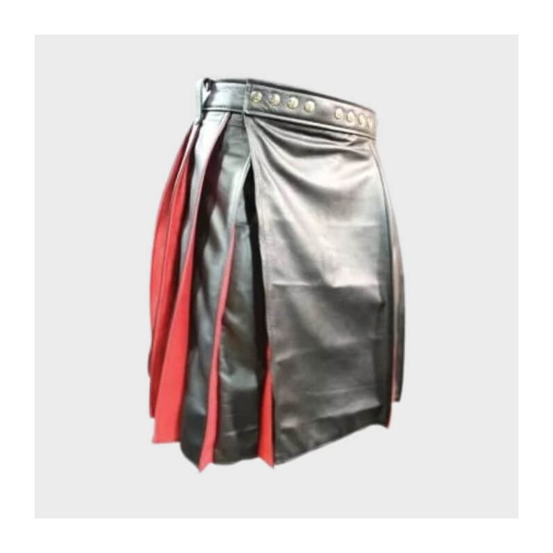 Elevate your style with our stunning Black Red Pleated Leather Kilt, designed for the bold and adventurous. Perfect for men who appreciate a unique blend of tradition and modernity, this kilt is ideal for festivals, casual outings, or even as a fashion statement at social events. Whether you're a kilt enthusiast or simply looking to try something new, this piece is recommended for those who want to stand out from the crowd.Crafted from premium leather, this kilt features striking red pleats that add a pop of color and movement to your look. The authentic design ensures a comfortable fit, allowing you to move freely throughout your day. With two spacious pockets, you'll have the convenience of storing essentials while maintaining a sharp, stylish appearance. The combination of black and red hues offers versatile styling options, making it easy to pair with a variety of tops and accessories.Made from 100% genuine leather, our Black Red Pleated Leather Kilt ensures durability and long-lasting wear. The high-quality material is soft to the touch yet tough enough to withstand the rigors of daily use. The meticulous stitching and attention to detail demonstrate our commitment to craftsmanship and quality, making this kilt not just a piece of clothing but an investment in your wardrobe.In conclusion, the Black Red Pleated Leather Kilt is a must-have for those who wish to make a statement. With its unique design, exceptional quality, and practical features, this kilt is perfect for both everyday wear and special occasions. Embrace your individuality and showcase your fashion sense with this remarkable piece today!