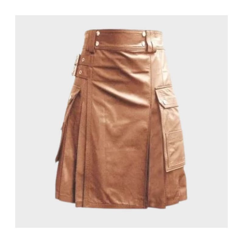 Experience the perfect blend of tradition and modern style with our Luxurious Brown Leather Kilt. This exquisite piece is recommended for those who appreciate the craftsmanship of Scottish heritage, whether you're attending a formal event, festival, or looking to make a bold fashion statement. Designed for men who seek comfort and sophistication, this kilt allows you to embrace individuality while enjoying the rich culture of kilt-wearing.Our Luxurious Brown Leather Kilt is crafted with a keen eye for detail, showcasing a rich brown hue that enhances its elegance and versatility. Featuring traditional pleats and pockets, this kilt combines functionality with a stylish silhouette, making it suitable for day-to-day wear as well as special occasions. Its timeless design is complemented by rugged, durable construction that ensures both style and longevity.Made from high-quality, supple leather, this kilt offers a luxurious feel that drapes beautifully while providing ease of movement. The breathable lining ensures comfort against the skin, making it a great option for year-round wear. The premium materials reflect both our commitment to quality and the essence of classic Scottish attire, ensuring you look and feel your best.Elevate your wardrobe with the Luxurious Brown Leather Kilt — a must-have for anyone seeking to make a statement. Its unique blend of tradition and contemporary style not only enhances your appearance but also invites compliments and admiration. Revel in the beauty of craftsmanship and express yourself with confidence in this stunning piece.